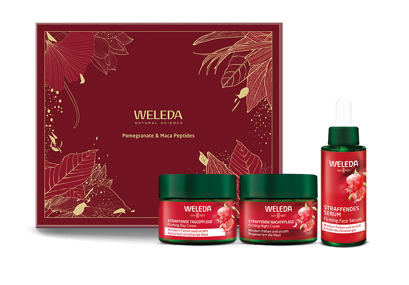 Zpevňující set s Granátovým jablkem a Maca-peptidy je luxusní kombinací přírodních anti-age ingrediencí vytvořenou pro pleť, která touží po pevnosti, jasu a mladistvém vzhledu. Organický olej z granátového jablka dodává silnou dávku antioxidantů, zatímco maca-peptidy stimulují tvorbu kolagenu a působí jako rozjasňující booster. Sérum, denní a noční krém tvoří dokonalý pečující rituál – od okamžitého zpevnění přes hlubokou hydrataci až po noční regeneraci. Tento elegantní set je ideálním dárkem pro každou ženu, která touží po intenzivní přírodní péči s luxusním efektem.