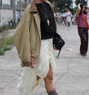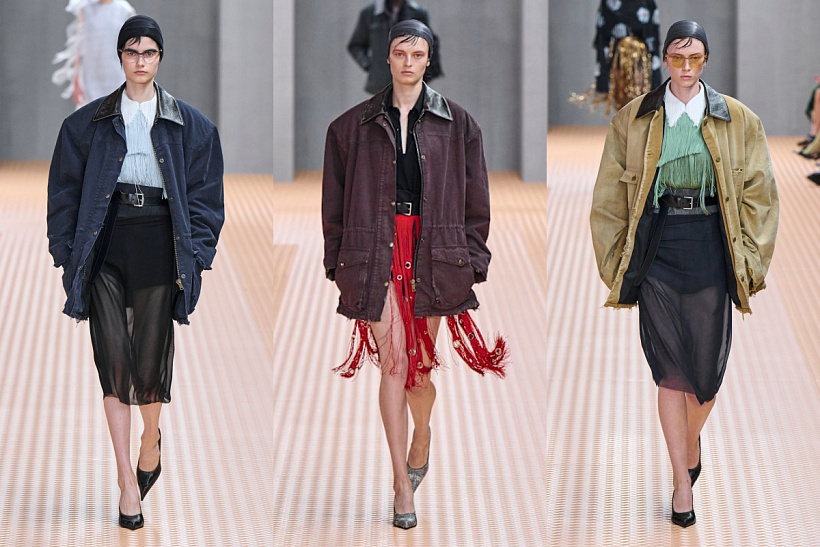 Když se barn jacket objevila na mole v kolekci jaro/léto 2024 od módního domu Prada, bylo zřejmé, že tento původně utilitární kousek čeká nová kapitola. Charakteristická hranatá silueta, výrazné kapsy, kontrastní límec a odolný materiál jí dávají nezaměnitelný vzhled, který dnes osciluje mezi work wear a mladistvým street stylem. Není náhodou, že si tato „farmářská bunda“ našla místo v šatnících fashionistek v rámci týdnů módy po celém světě, včetně Belly Hadid, Duy Lipy nebo Lucy Williams. Za posledních pár let jsme je viděli u Hermès, Victorie Beckham, Fendi, Loewe nebo také The Row či Toteme.