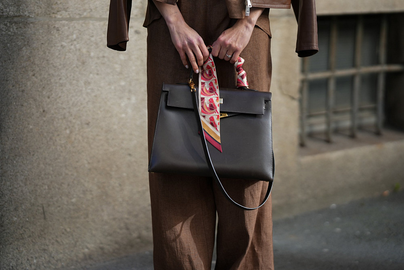 Asi nejsnazším způsobem, jak zakomponovat hedvábný šátek do svého outfitu, je uvázat ho na ucho kabelky. Buď klasicky na uzel, nebo jako elegantní mašli. Kabelka se rázem promění ve středobod outfitu. Navíc jde o ideální styling šátku pro všechny, kteří ještě nemají dostatek odvahy na to, aby ho nosili kolem pasu nebo ve vlasech.