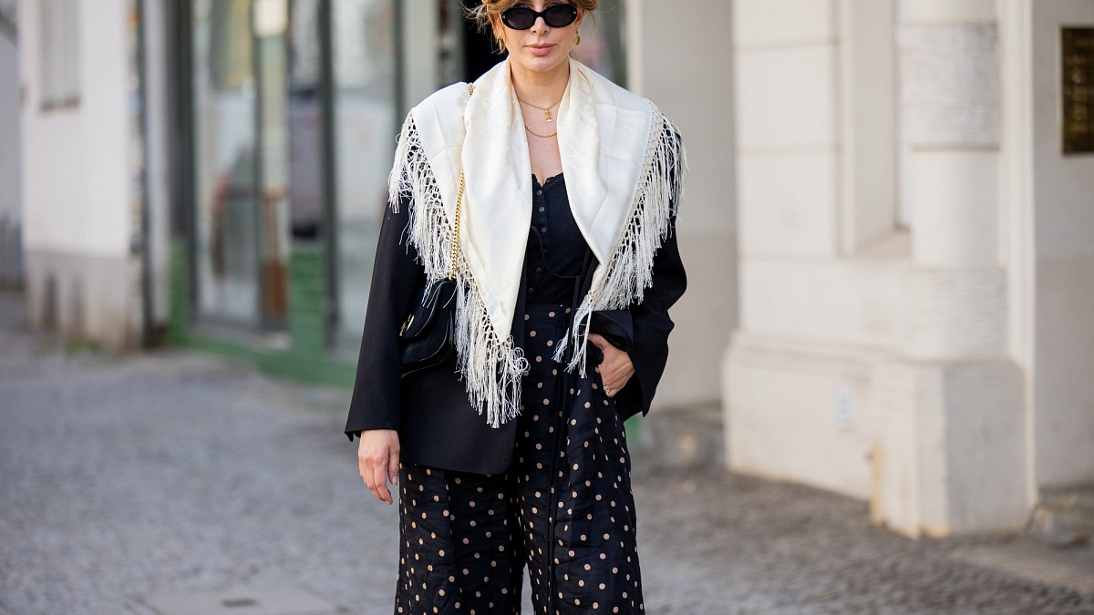 Šátek přehozený přes ramena může na první pohled působit jako návrat do minulého století, ve skutečnosti je ale překvapivě současný. Dodává outfitu lehkost i eleganci. Nejlépe funguje ve větším formátu a se vzorem, který si řekne o pozornost. Květiny, geometrické motivy nebo klasické puntíky jsou sázkou na jistotu.