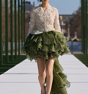 Květiny jsou u Diora aktuální každou sezónu - Jonathan Anderson dokonce celou kolekci představil pod širým nebem v pařížské zahradě Jardin des Tuileries, mezi plovoucími lekníny (těmi v jezírku i na obuvi modelek).