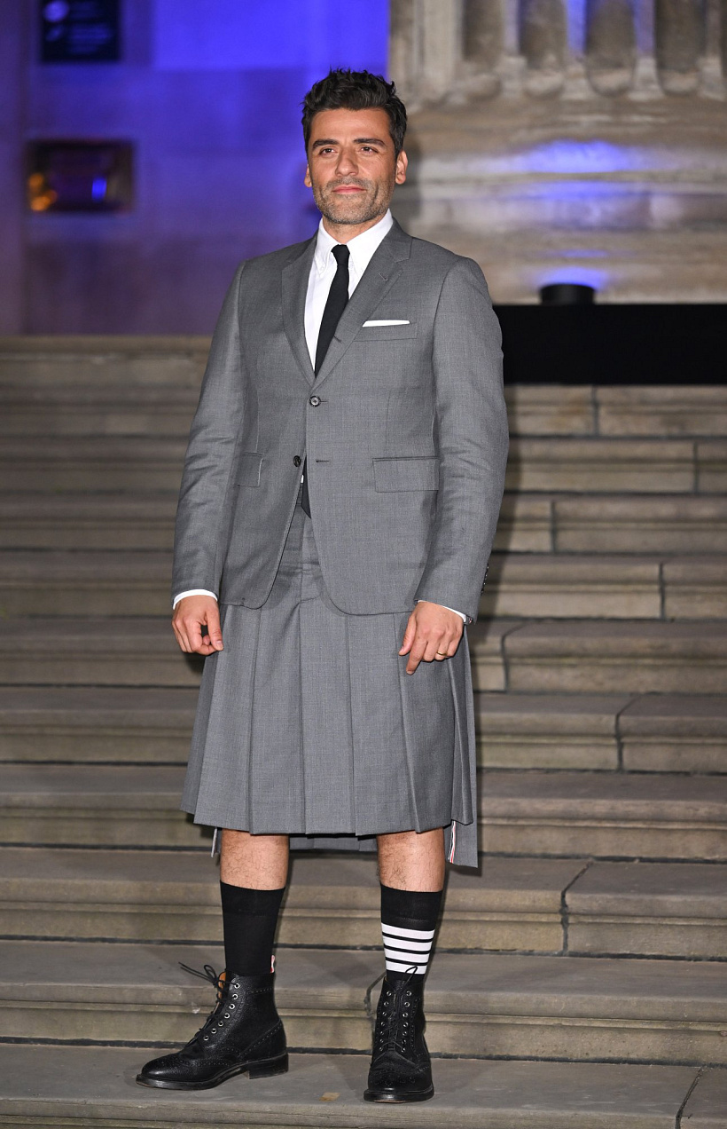 Oli Egler: Že pánská móda mě baví víc než dámská… a také, že by se měly vrátit pánské sukně. Nedávno jsem prohlížela staré fotky Marca Jacobse, který je nosil s martenskami a kašmírovým svetrem, a vypadalo to skvěle. To bylo více než dekádu zpět. Nyní se k nim vrací Thom Browne, který je navrhuje pro Oscara Isaaca a Peta Davidsona, a nemůžu si pomoct – líbí se mi to! Midi a-line plisé je tak univerzální kus, který prostě sluší všem.