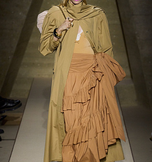 V kolekci SS26 naservíroval přísnou erotiku, strukturovaná ramena kombinovaná s pouzdrovými sukněmi, obrovské mašle na košili v kožených bundách, šperky jako nadměrné glamour trofeje. Technický nylon na volánových šatech v druhé části show vykouzlil současnější vzhled této formy.