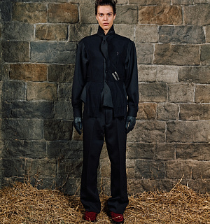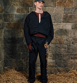 Místo hledání archivního dědictví své mladé značky otevřel Černý fundus historických kostýmů Barrandov Studio – a s lehkou drzostí jej přijal jako vlastní archiv. „Je to můj způsob, jak reagovat na nekonečné recyklování archivů velkých módních domů,“ říká designér. Kostým, který se tváří jako historie, se tak stává metaforou celé kolekce: nic není skutečné, všechno je přetvářka – ale s moderní elegancí a humorem.
