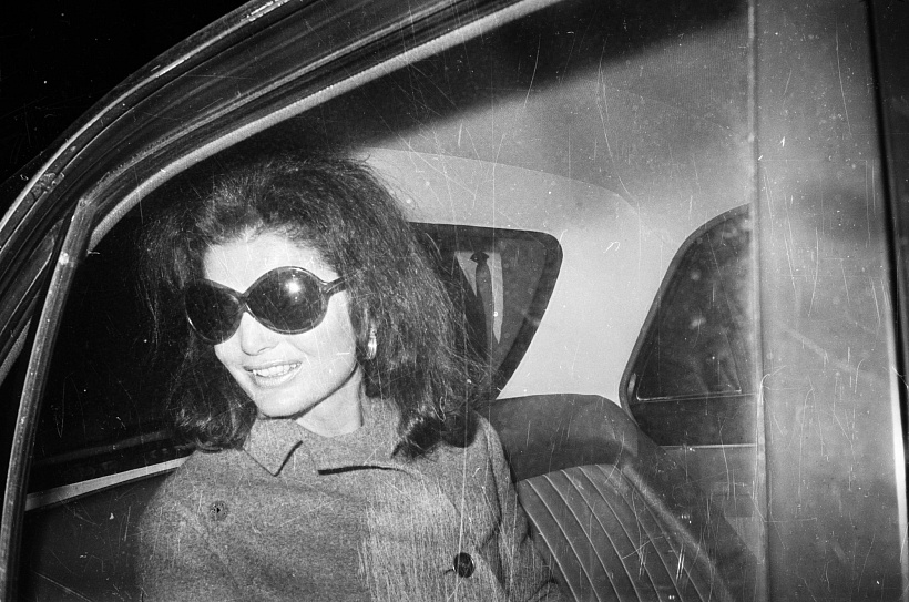Jackie O měla brýle vždy velké, dominantní a formát se nikdy nezměnil, jen tvar čoček rotoval od kulatých přes oválné. V letech po atentátu na JFK se z toho stala součást řízené viditelnosti až se z forografiíí z manhattanských ulic stal celý portrét.