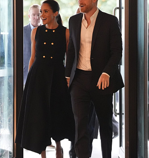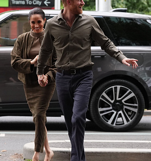 V rámci tour nebyla nouze ani o casual outfity. Na rugby zápas dorazila Meghan v all-black looku, jehož základ tvořil jemný rolák, kalhoty v podobném tónu a klasické lodičky od Manolo Blahnik. Přes ramena pak ležérně přehodila trenčkot od Camilla and Marc.