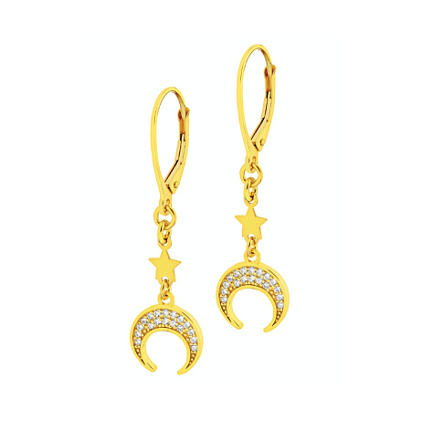 Pozlacené stříbrné náušnice se zirkony - půlměsíce, hvězdy, AP536-5409