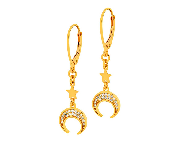 Pozlacené stříbrné náušnice se zirkony - půlměsíce, hvězdy Cena 1 590 Kč