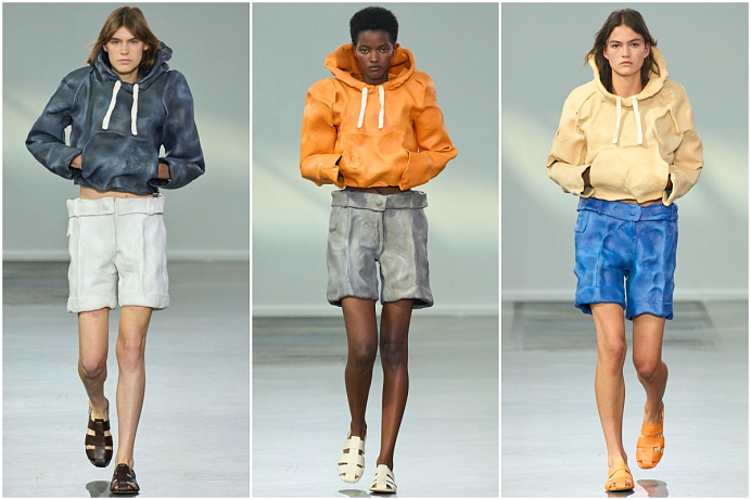 Bez trochy ironie se nikdy neobchází žádná přehlídka návrháře – móda je pro něj hra. O něco více naivní (a méně morbidní) než u Balenciaga a něco artovější než v případě Moschino. Tentokrát návrhář vytvořil topy s kapucí a šortky připomínající pevně stojící lego, to bylo vymodelováno ručně z plastelíny a dotvořeno ve 3D.