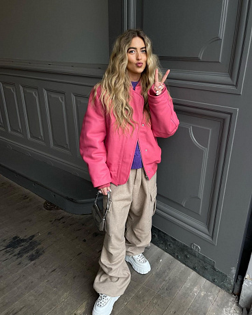 Maskulinitu, kterou kapsáče kvůli své dlouhé historii v mužském šatníku mají, můžete nabourat také několika výraznými a zářivými barvami. Růžová, trendy fialová, žlutá nebo třeba jasně modrá umí vytvořit skvělý kontrast. Celý outfit ještě doplňte malou stříbrnou kabelkou.