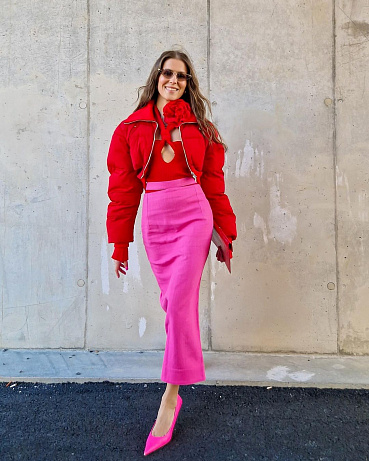 Noste je spolu, vůbec se totiž netlučou. Ani když obě zvolíte v tom nejzářivějším odstínu. Neonová růžová se naopak musí kombinovat především s barvami podobné intenzity. Na důležitou party, pracovní schůzku, ale klidně i jen tak, protože se pak budete cítit slavnostně.