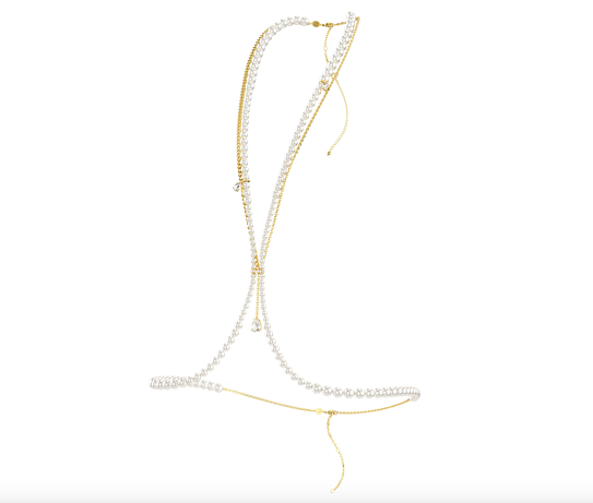 Tělový řetízek Idyllia Křišťálová perla, Bílý, Pokoveno ve zlatém odstínu