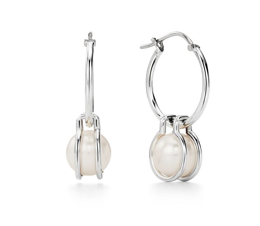 Hard Wear Pearl Hoop Earrings in Sterling Silver