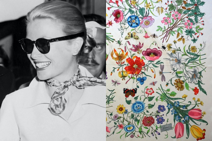 Fun fact: Slavný floral print od Gucci, který se stal jedním z poznávacích znamení domu, vznikl původně jako dárek pro Grace Kelly. Ta v roce 1960 navštívila vlajkový obchod Gucci v Miláně, kde si vybrala jednu z Gucciho typických tašek s bambusovými rukojeťmi. Pro italský dům to byl zlatý věk, kdy dům nabíral na popularitě mezi největšími světovými celebritami. Rodolfo Gucci, syn zakladatele Guccia Gucciho, jí chtěl dát k nákupu dárek, a to něco víc než jen kus z butiku. Gucci tak požádal italského ilustrátora Vittoria Accornero o návrh hedvábného šátku stejně elegantního jako ona. Kelly byla známá láskou k hedvábným šátkům a květinám. Tak vznikl potisk Flora – s vyobrazením 43 druhů květin, rostlin a hmyzu inspirovaný Botticelliho Alegorií jara, která zobrazuje nymfu Chloris znovuzrozenou jako Floru v róbě s potiskem vlčích máků, růží, fialek, sedmikrásek a chryzantém. Print se od té doby stal jedním z nejoblíbenějších potisků domu, který byl několikrát předělán do moderní podoby a jehož tváří byla dokonce sama vnučka Grace Kelly.