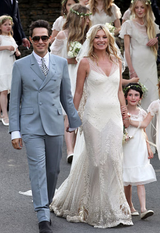 Vintage inspirované šaty Kate Moss, které si oblékla na svatbu s frontmanem kapely The Kills', Jamiem Hincem, v roce 2011, patří k nejkrásnějším a nejoblíbenějším šatům vůbec. Nehledě na minimalistický vzhled představují nesmrtelnou eleganci snoubící v sobě tradiční a moderní elementy. Šaty byly navržené jejím blízkým přítelem, návrhářem Johnem Gallianem, a to v době, kdy podle vlastních slov nemohl zvednout ani tužku po svém velkém skandálu a vyhození z domu Dior. Sám návrhář řekl, že se pro něj jednalo o proces kreativní rehabilitace, kdy se opět musel „stát sám sebou v době, kdy nevěděl, kým je“.