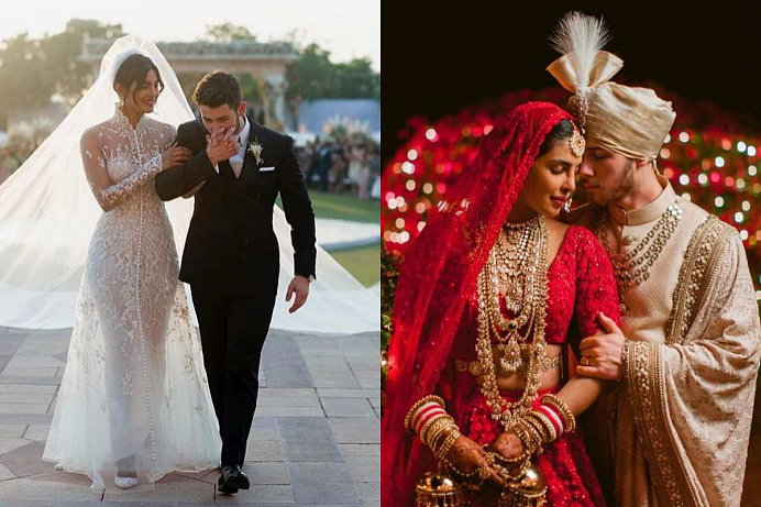 Chopra a Nick Jonas měli hned několik obřadů – pár se oficiálně vzal v prosinci 2018 v paláci Taj Umaid Bhawan v Džódhpuru v Indii – to byla prý jen jedna z mnoha oslav jejich svazku. Nevěsta na sobě měla třpytivou červenou lehengu od indického návrháře Sabyasachiho, vyrobenou z ručně vyřezávaných organzových květů, francouzských uzlů z hedvábné příze a červených krystalů. Na křesťanský obřad Chopra zas oblékla zakázkovou róbu od Ralpha Laurena s krystaly Swarovski a s 23metrovým závojem.