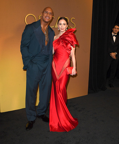 Emily Blunv v Schiaparelli po boku s The Rockem