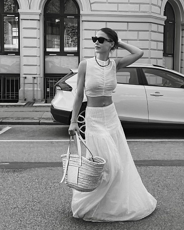 A bát se ho nemusíte ani v kombinaci se sukní. Ať už s mini džínovou, nebo třeba tou dlouhou kolového střihu. Stejně jako Sophia Roe můžete sáhnout po nějakém s originálním nabíráním, stejně dobře ale bude fungovat i jednoduché tílko racer back nebo s výstřihem do V.