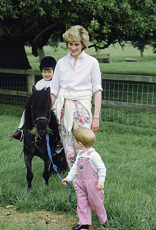 Princezna Diana si hraje se svými syny Williamem a Harrym v Highgrove v roce 1986.