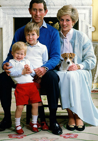Princ Charles a princezna Diana doma v Kensingtonském paláci se svými syny princem Williamem a princem Harrym v prosinci 1986.