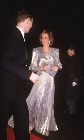 Metalické stříbrné šaty z plisovaného lamé z roku 1985.