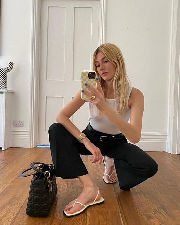 Na pobíhání po městě je nejlepší vsadit na co nejpřirozenější pohodlný look. Méně je více a černé džíny a bílé tílko jsou kombinací, která nikdy nebude mimo. Teď i za dvacet let budeme přísahat, že nic lepšího si do horkého letního dne obléct nemůžete.