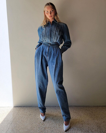Úzký vysoký pas a nohavice nafukující se doširoka. Střihem se podobají džínám „mom“, nohavice mají ale volnější a pas ještě výraznější. Na rozdíl od slim-leg džín jsou pohodlnější, nohám dávají více prostoru, takže ani tužší denim nevadí. Nejlépe vypadají, když do nich zastrčíte volnou košili či body. Bundy a saka volte v délce cropped.