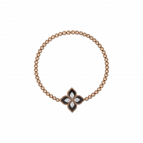 Náramek z růžového zlata s černým nefritem a diamanty, Princess Flower
