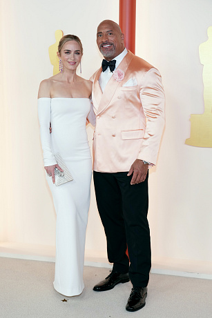 Emily Blunt v róbě od Valentino a Dwayne Johnson v kostýmu od Dolce & Gabbana.