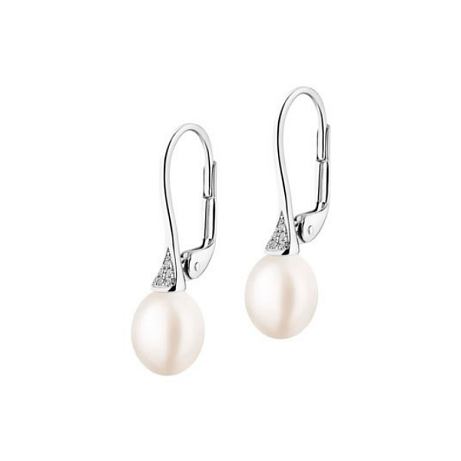 Náušnice z bílého zlata s diamanty a perlami - ryzost 585