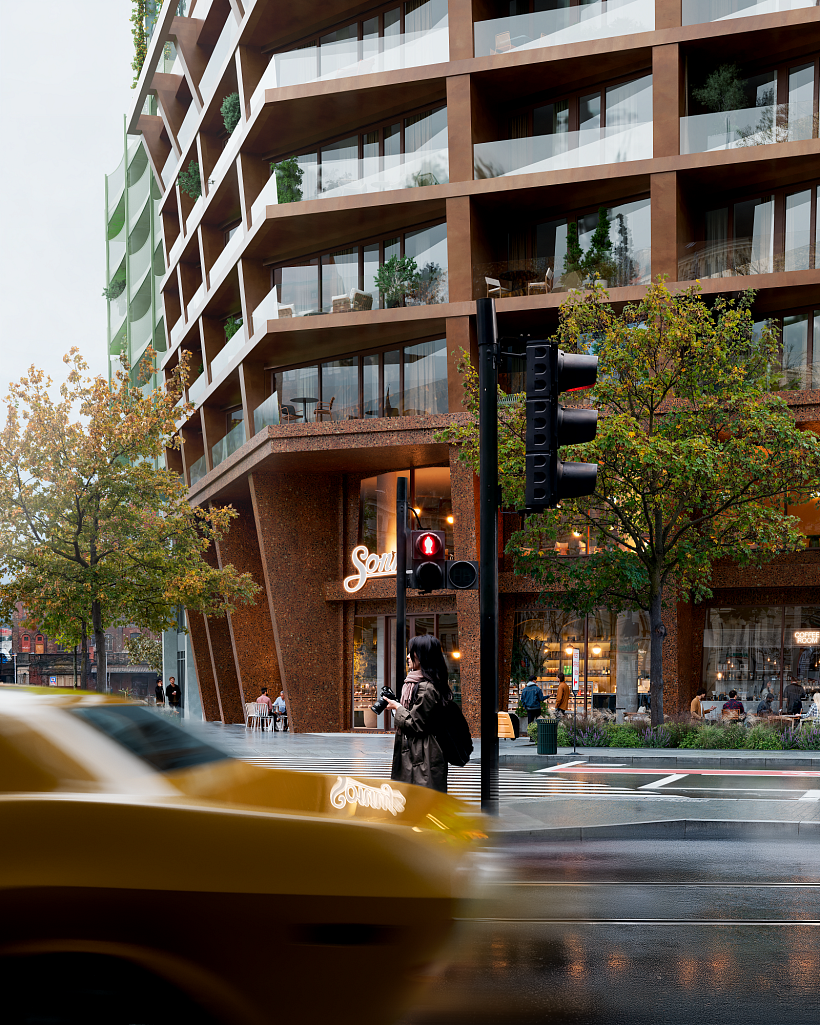 Koncept projektu je postaven na různorodosti materiálů a stylů, které jsou pro newyorskou architekturu typické. Dominantou je budova s industriálním nádechem, kterou doplňuje nárožní dům s elegantními prvky Art Deca. Výrazným vizuálním prvkem jsou také fasády využívající lícové zdivo a precizní ocelové detaily, jež celku dodávají syrovost i nadčasovou eleganci. Tento přístup umožňuje projektu přirozeně vplynout do struktury rozvíjejícího se města a zároveň mu dodat punc světovosti. Nejedná se o pouhou imitaci zahraničních trendů, ale o promyšlenou práci s materiálem a formou, která reflektuje potřeby moderního urbanismu.